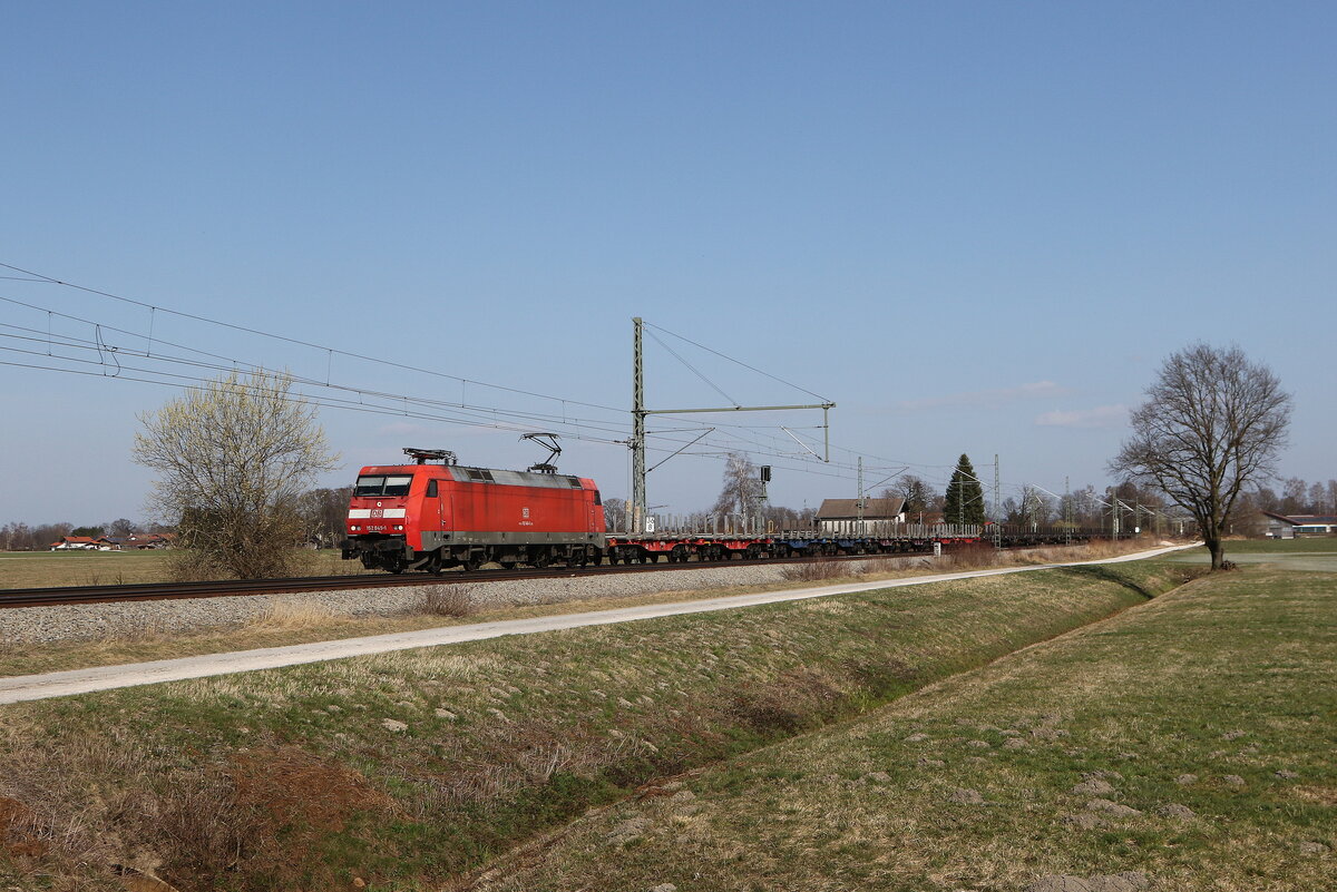152 059-2 befördert am 20. Februar 2014 einen gemischten Güterzug bei Thüngersheim durch das Maintal.