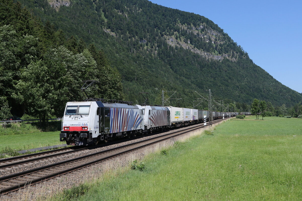 6185 610 von "RTB Cargo" mit einem "KLV" aus Salzburg kommend am 4. März 2026 bei Axdorf im Chiemgau.