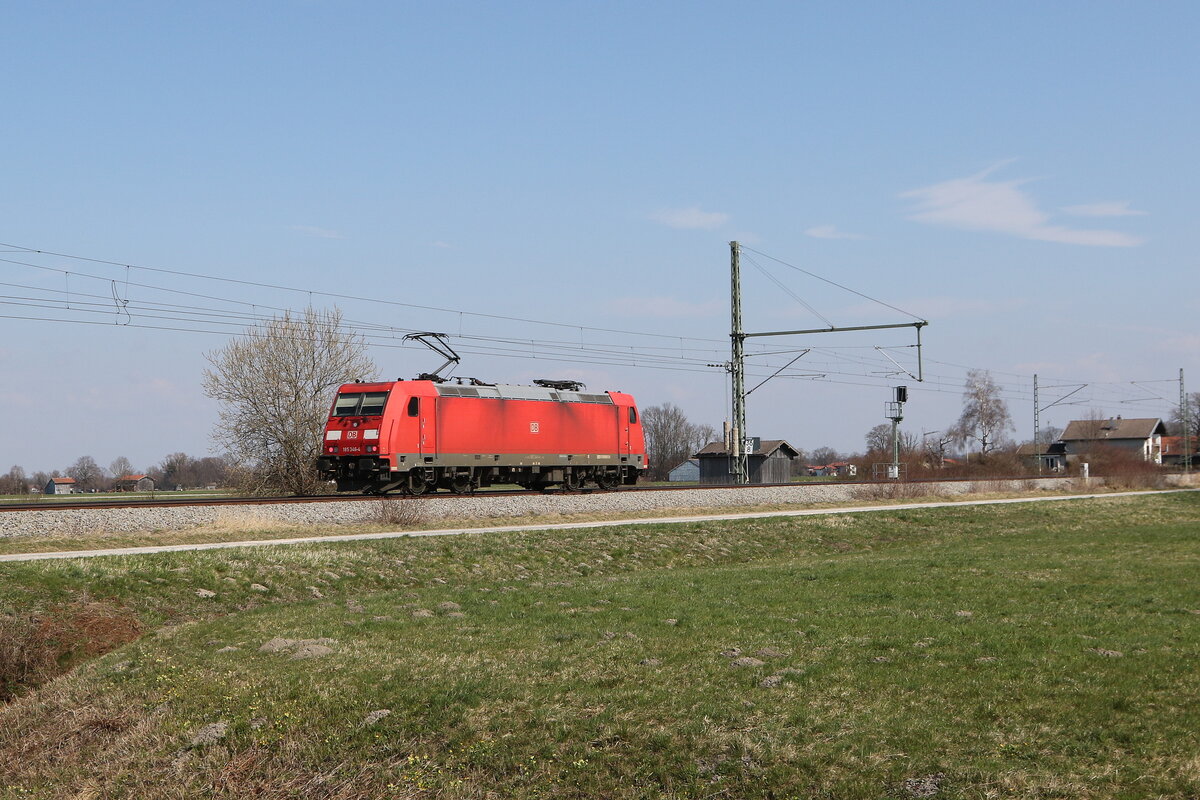 185 077 "Stahl auf Stahl" mit einem Stahlzug aus Freilassing kommend am 10. Februar 2022 bei Grabenstätt.
