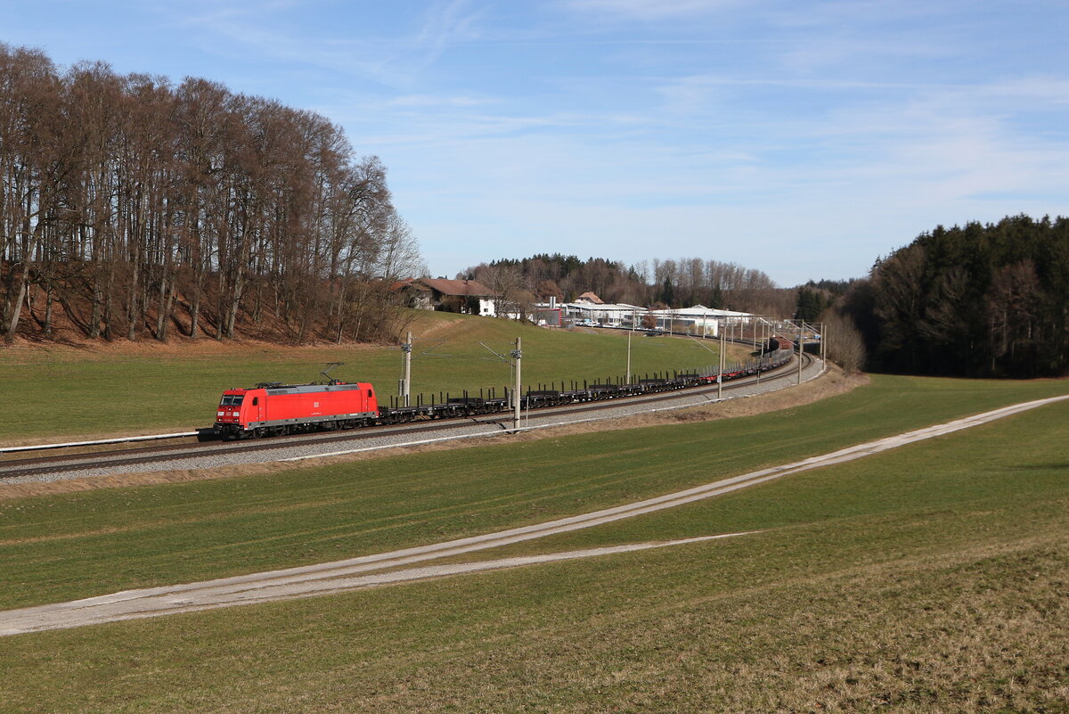 185 384 mit dem "WALTER-KLV" am 8. August 2022 bei Gemünden am Main.