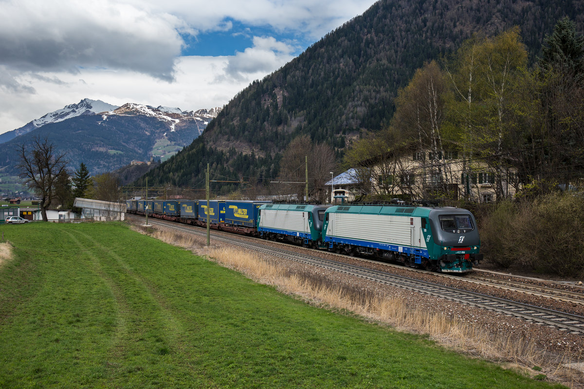 405 027-0 und 412 003-2 mit dem "Walter"-Zug am 19. März 2016 im Bahnhof "Brenner".