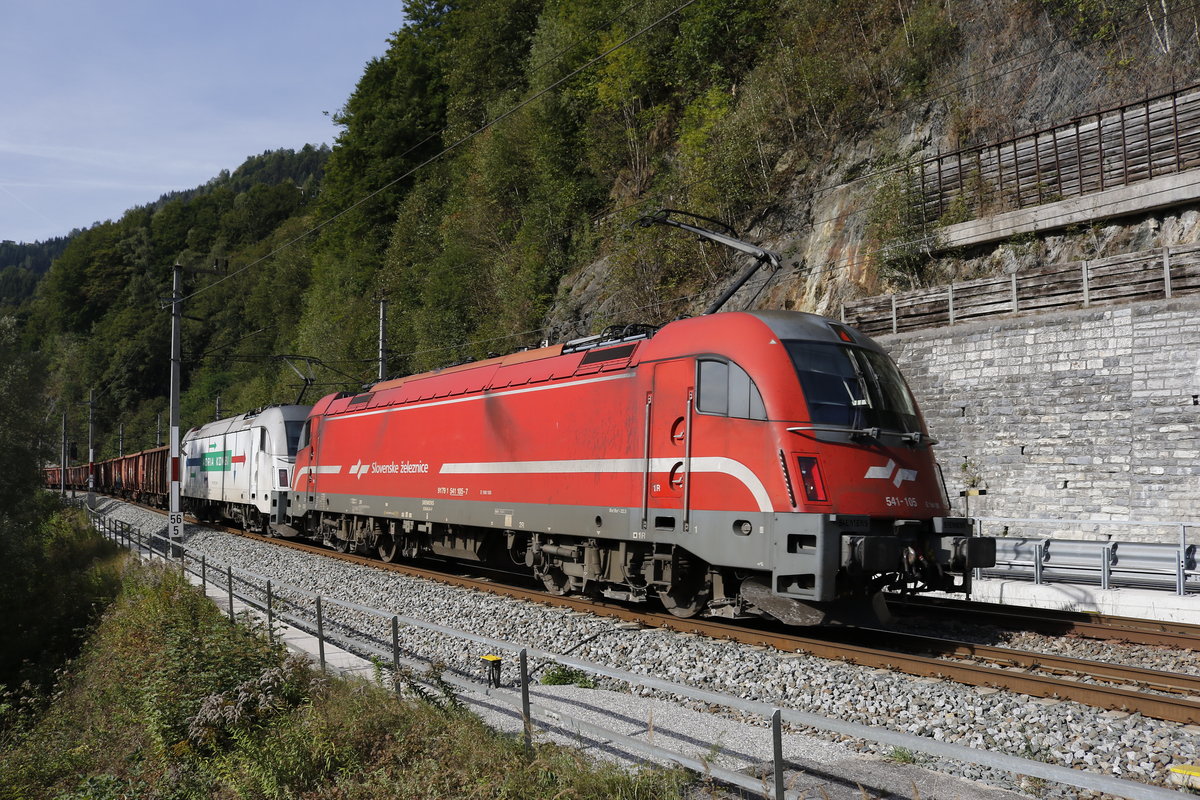 541 013 "Almdudler" und 541 020 vor dem "EKOL"-Zug am 5. November 2015 bei Grabenstätt.