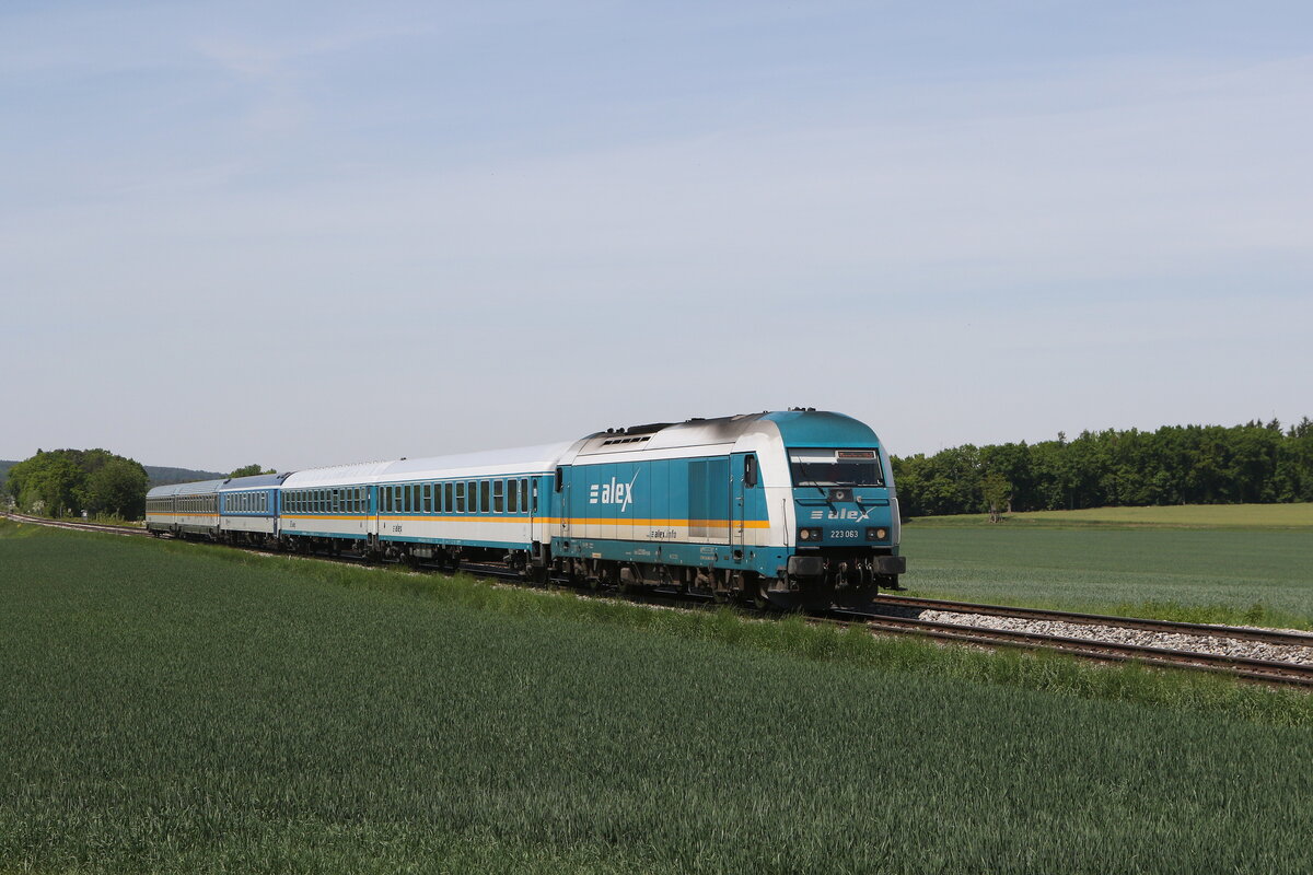 223 063 am 3. August 2022 bei "Reuth bei Erbendorf" in der Oberpfalz.