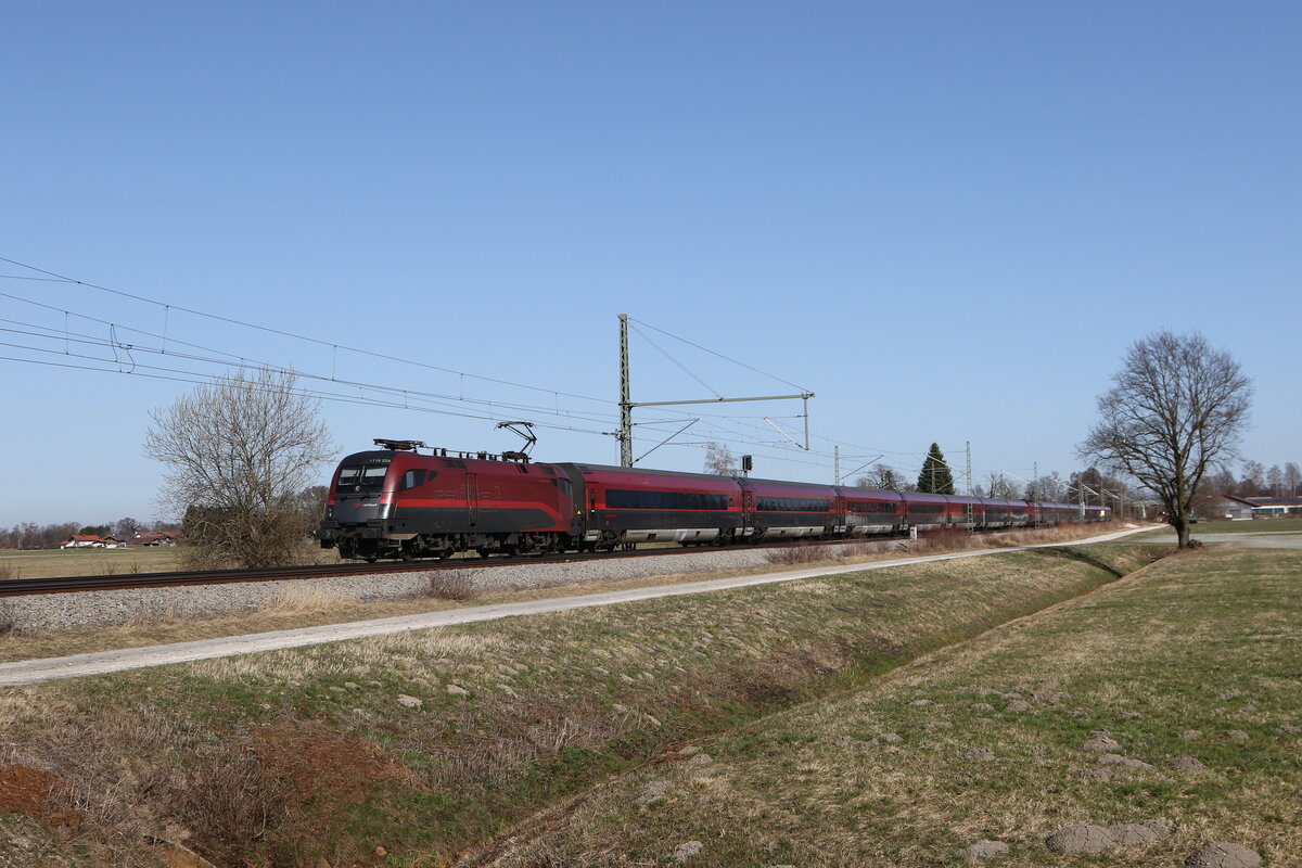1116 186 mit einem gemischten Güterzug aus Salzburg kommend am 28. Februar 2026 bei Axdorf im Chiemgau.