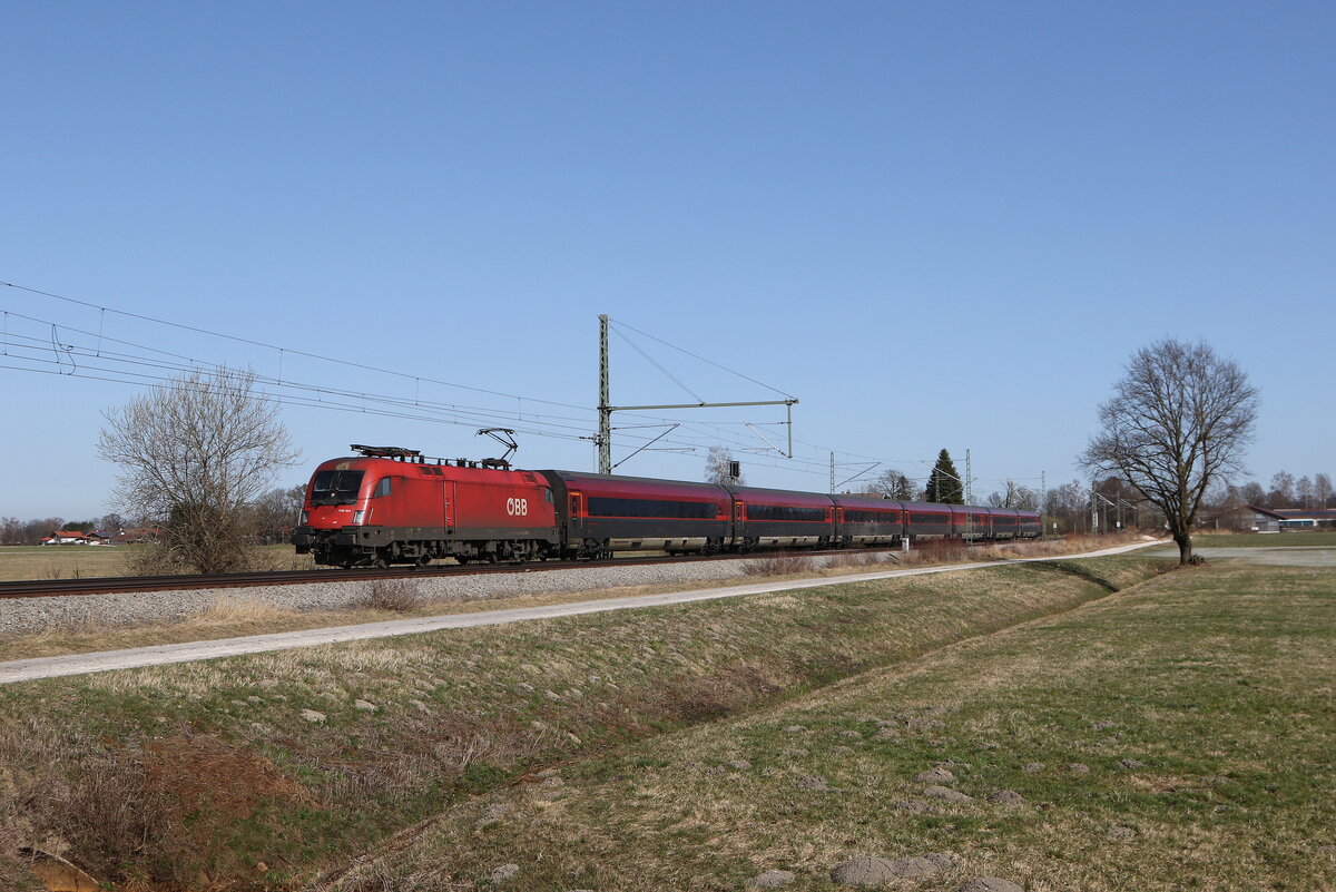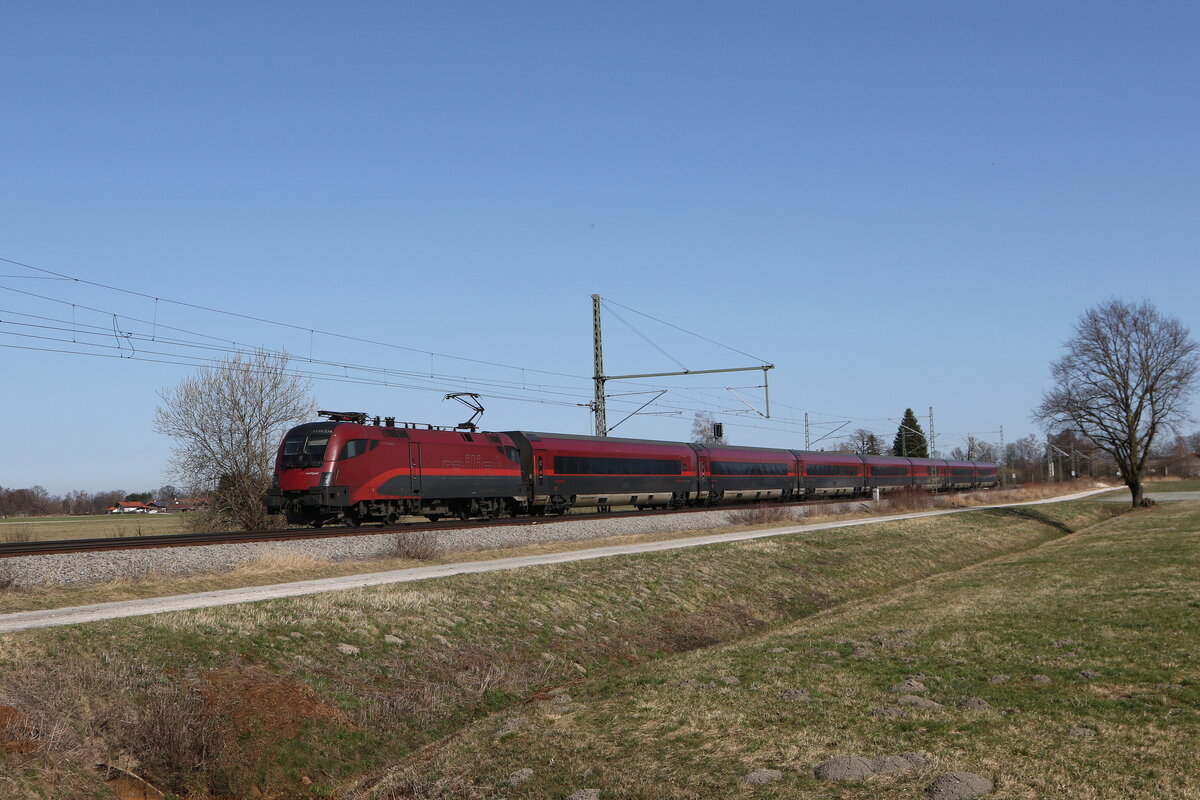 "Railjet mit Kuh" ist unser 1000. Bild auf dieser Seite. Aufgenommen am 18. November in der Nähe von Übersee am Chiemsee.