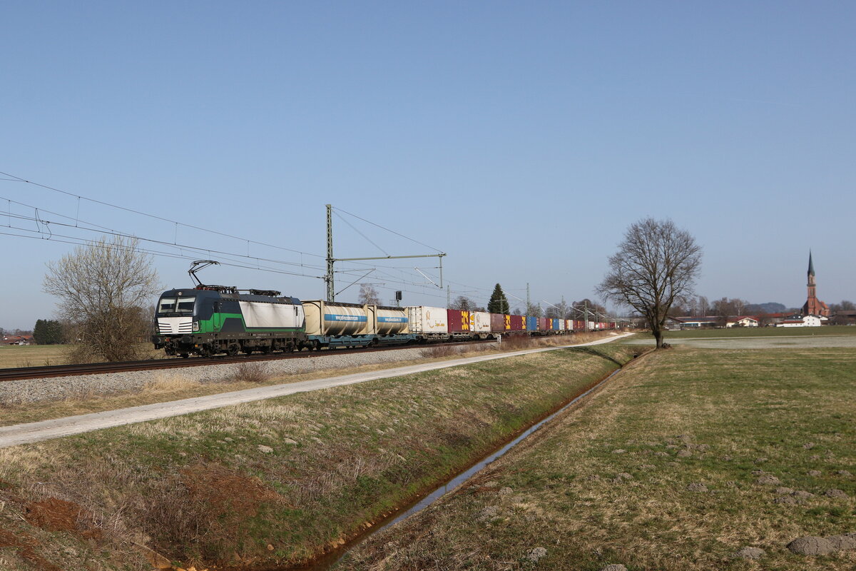 193 219 "Stille Nacht" mit einem Kesselwagenzug am 18. August 2019 bei Grabenstätt.