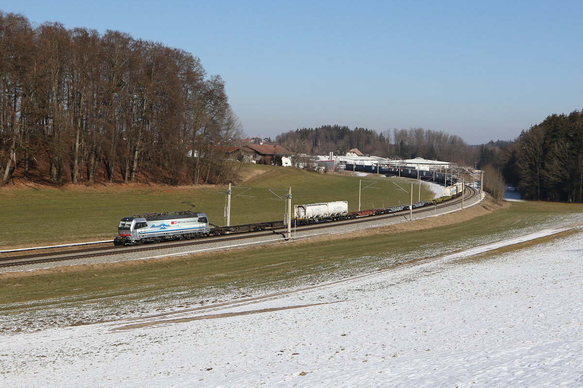 193 527 war am 4. Mai 2022 mit einem "KLV" in Oberwesel in Richtung Bingen unterwegs.