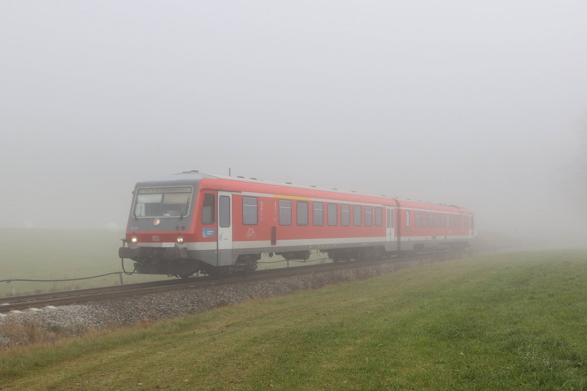628 483 "Der aus dem Nebel kam" war am 9. November 2020 bei Vachendorf in Richtung Aschau im Chiemgau unterwegs. (zum Bild)