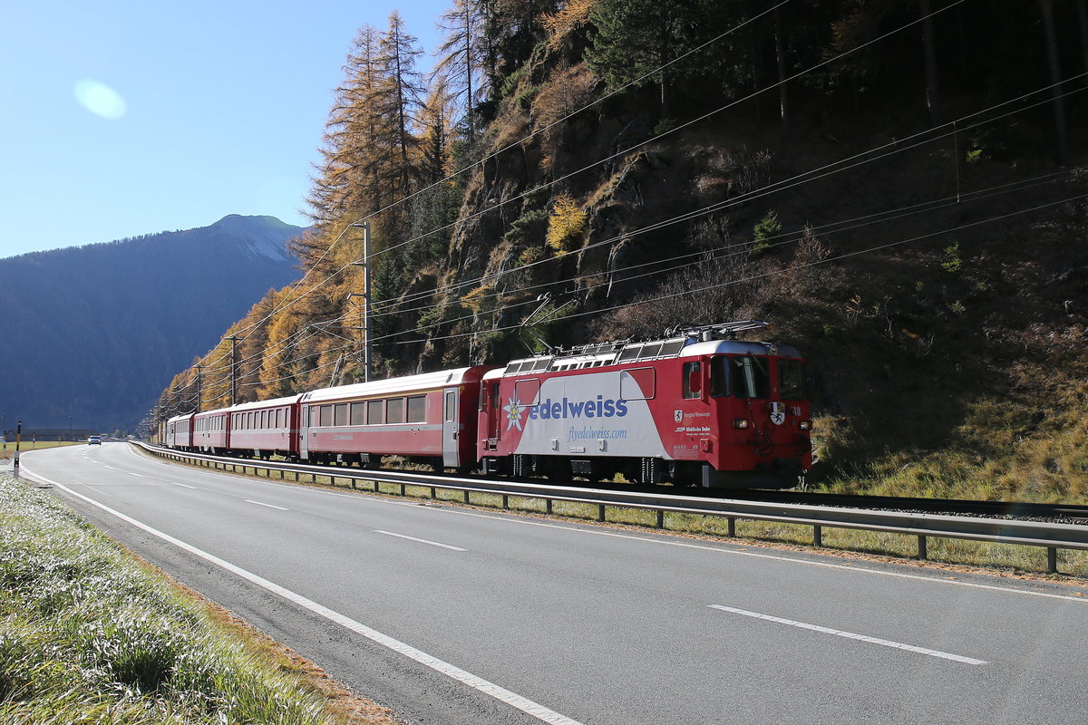 Ge 4/4 II 618 "Bergün" am 30. Oktober 2017 bei Susch. (zum Bild)